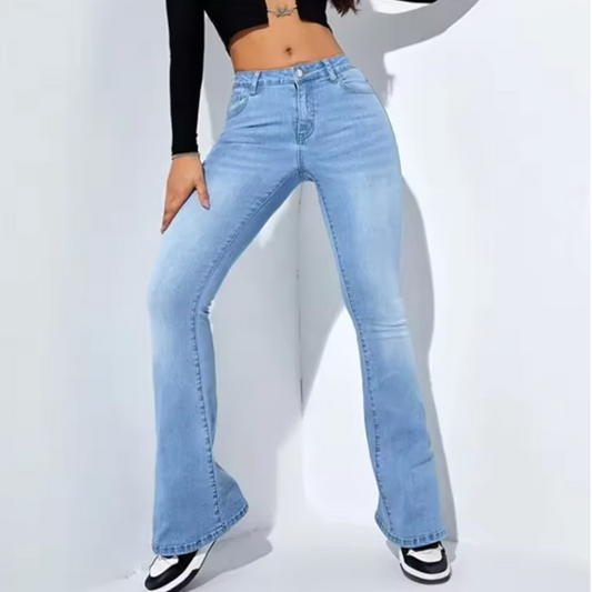 Tindra bootcut jeans dam | Bekväma stretchjeans med diskreta detaljer | Praktisk Fikor | Blå klassisk modell | 65% bomull 35% polyester