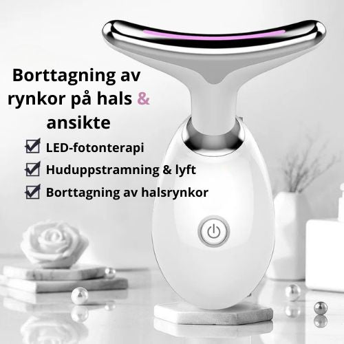 SkinLift360 nack- och nackenhet | LED-fotonterapi och högfrekventa vibrationer | Minskar rynkor och stimulerar kollagenproduktion | Ergonomisk design för konturering