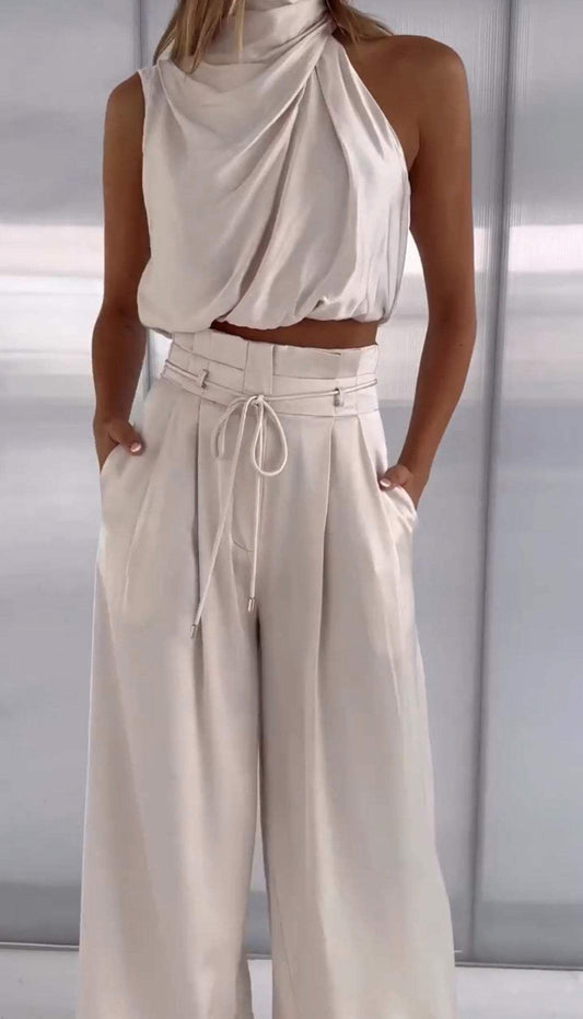 Jumpsuit - Elegant tyst - Knytskärp, breda ben - Perfekt för vardagliga eller formella tillfällen