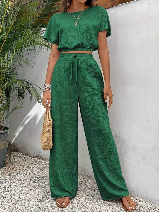 Trendigt damset med Crop Top och vida byxor