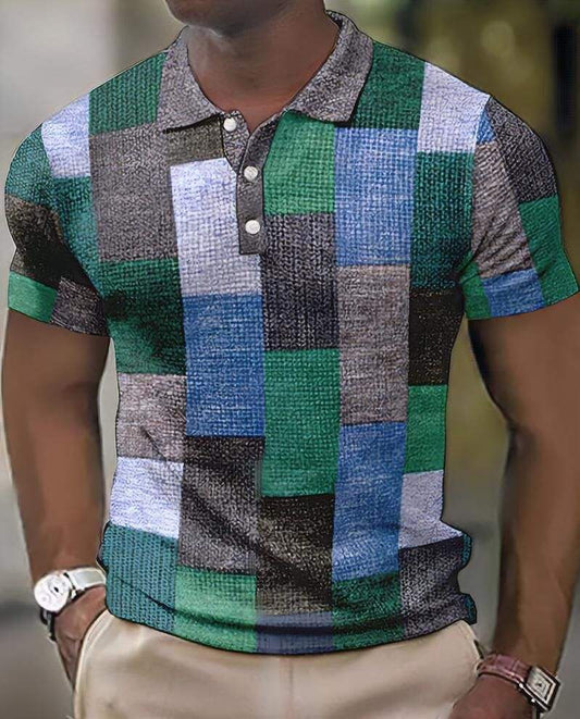 Snygg rutig herrpikétröja med kort ärmar