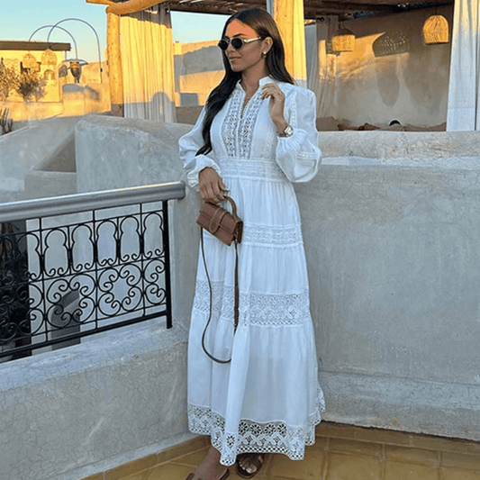 Maxiklänning - Elegant - V-ringad, lamell och ventilerad tyg - Perfekt för sommardagen