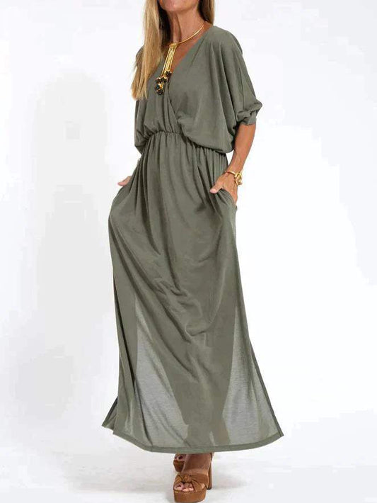 Flytande klänning - Elegant - Mjukt tyg, V-ringad - Perfekt för strand eller brunch