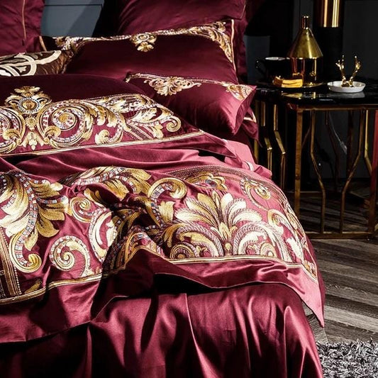 Golden Fier Röd och guld påslakanset - egyptisk bomull | Högkvalitativ egyptisk bolull - red and gold design - Snygg and bekväm for alla sovrum