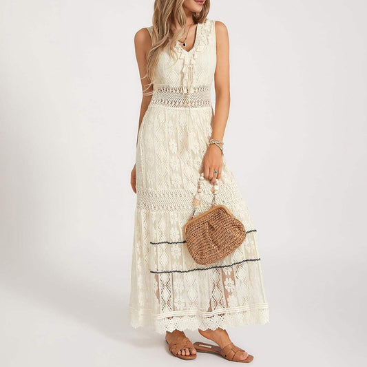 Boho Dress - Stella™ Collection - Spetsdetaljer, Andningsmaterial - Perfekt för sommartillställningar
